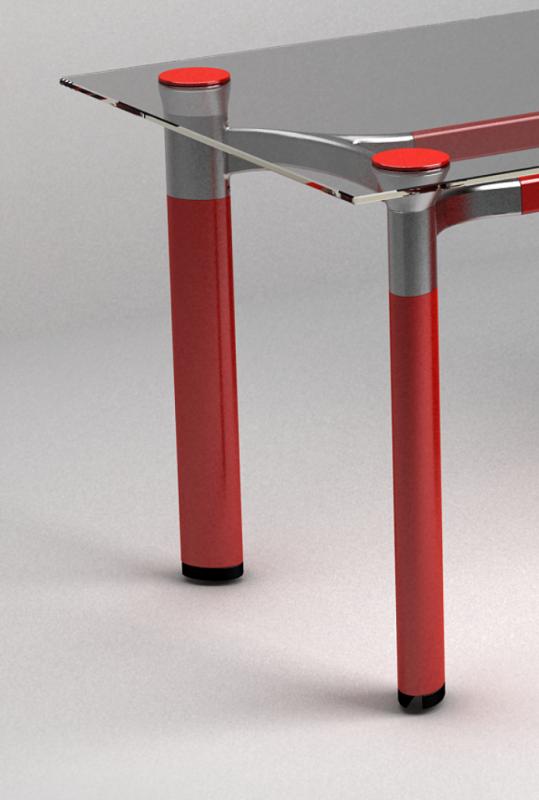 Especially notable are the sensual curves achieved with the aluminum gravity casting of the corner joint, the transition between the casting and the extruded aluminum frame and legs and the floating effect of the tabletop on the frame.