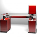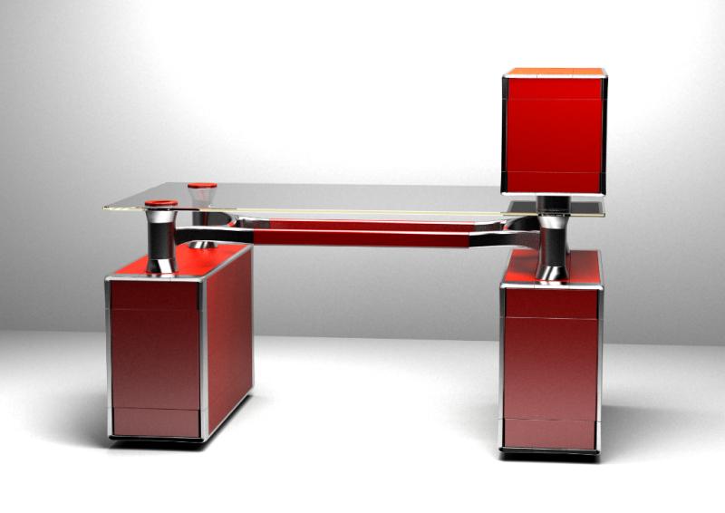 CPU stores in ventilated cabinet. All cables concealed in table legs and frame, exiting only at floor level and on table top .